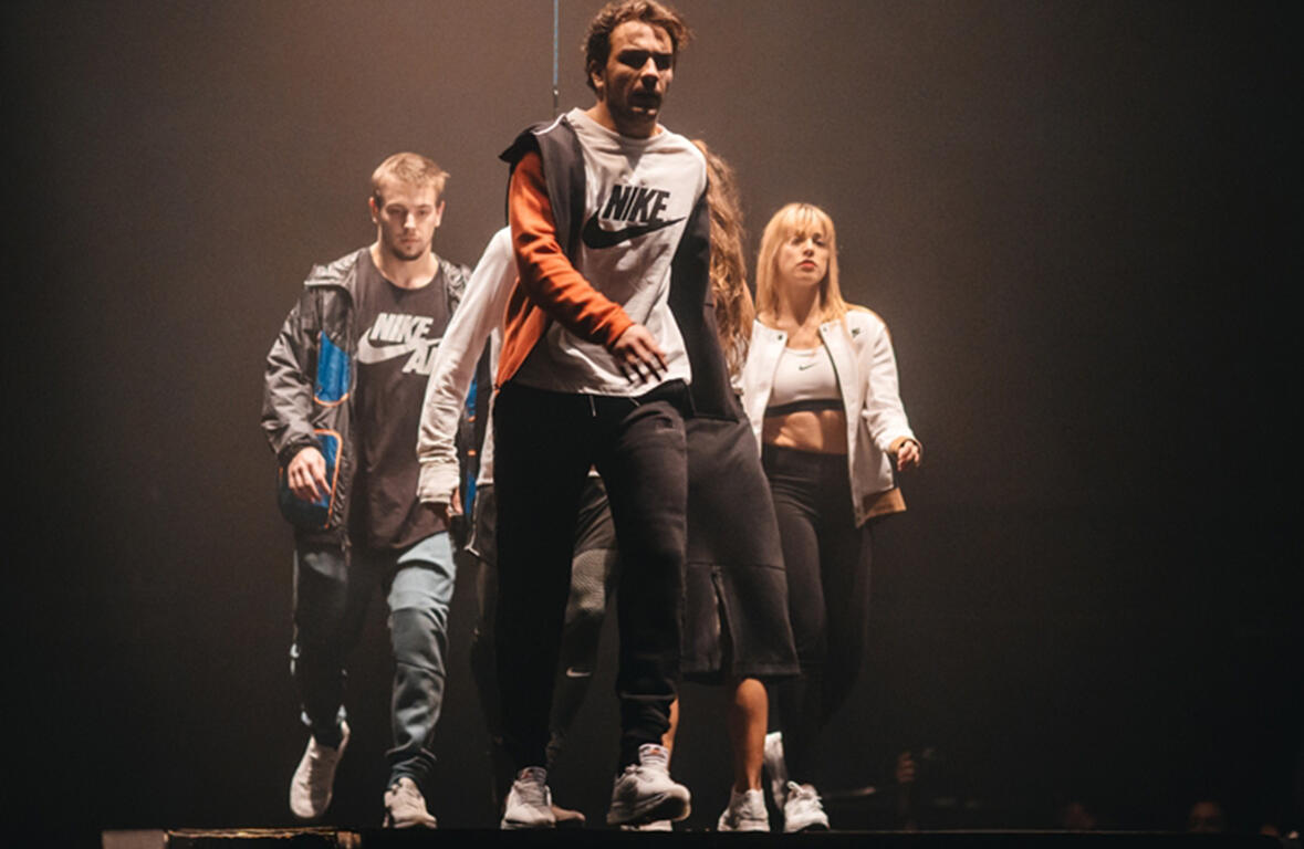 Había que trasladar al mundo real la sensación de aire de la suela de la VaporMax. Para lograrlo, Nike se unió a Fuerza Bruta, la compañía teatral de vanguardia reconocida por sus experiencias inmersivas y acrobáticas, y juntos crearon un espectáculo que desafiaba la gravedad, con el aire como protagonista. Mientras los artistas volaban sobre el público, las zapatillas permitían correr sobre él.